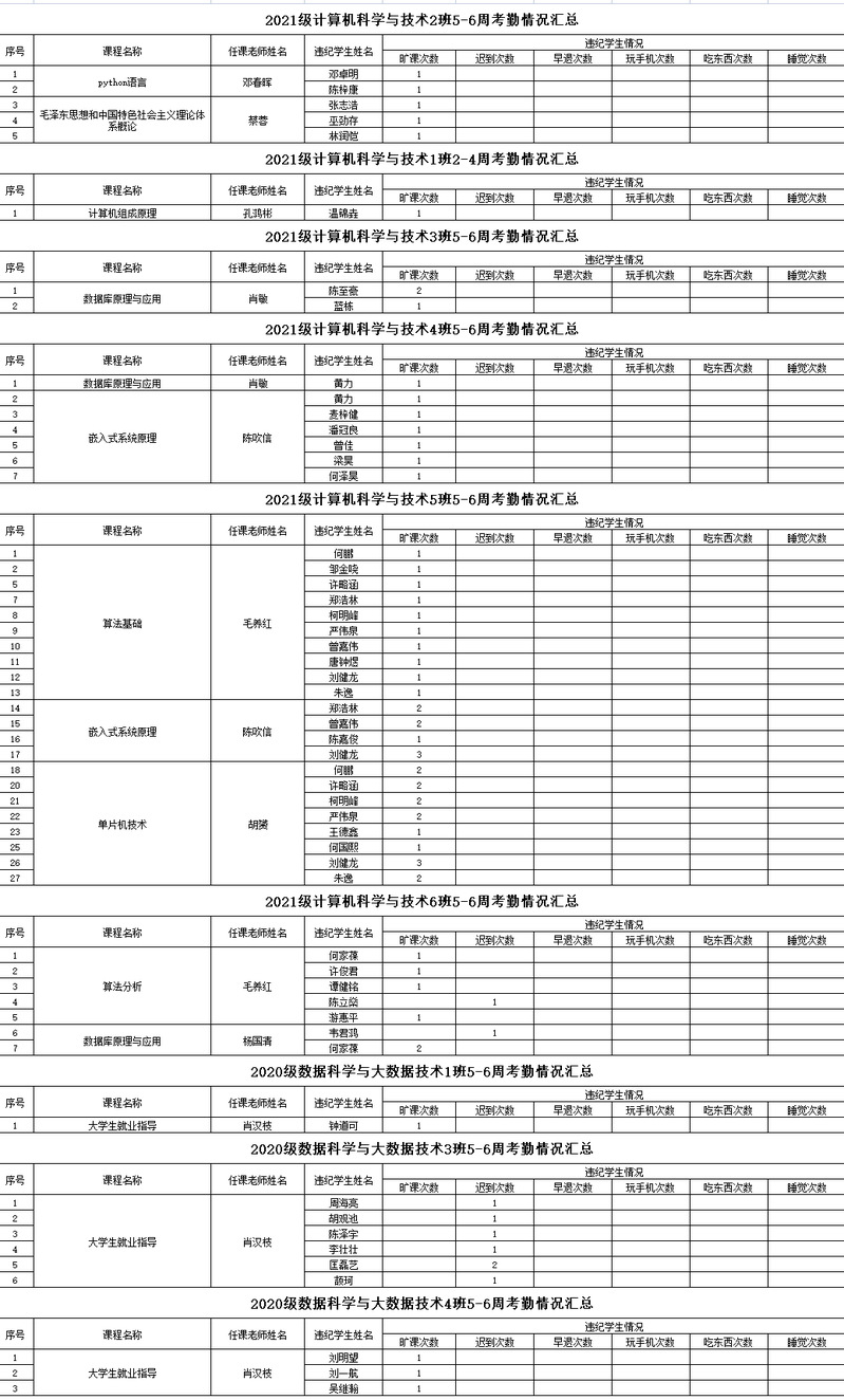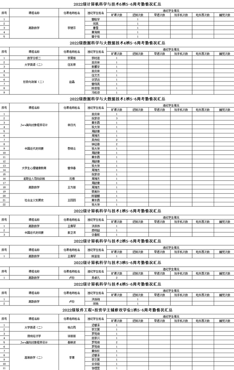 计算机工程学院/大数据学院2022-2023学年度第二学期5-6周考勤情况通报