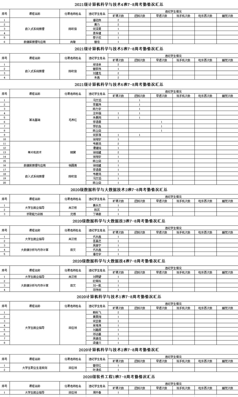 计算机工程学院/大数据学院2022-2023学年度第二学期7-8周学生考勤情况通报