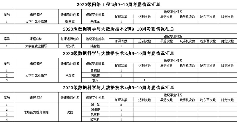 计算机工程学院/大数据学院2022-2023学年度第二学期9-10周学生考勤情况通报