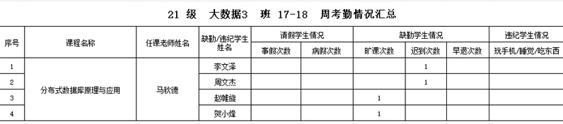 计算机工程学院/大数据学院2023-2024学年第一学期17-18周学生考勤情况通报