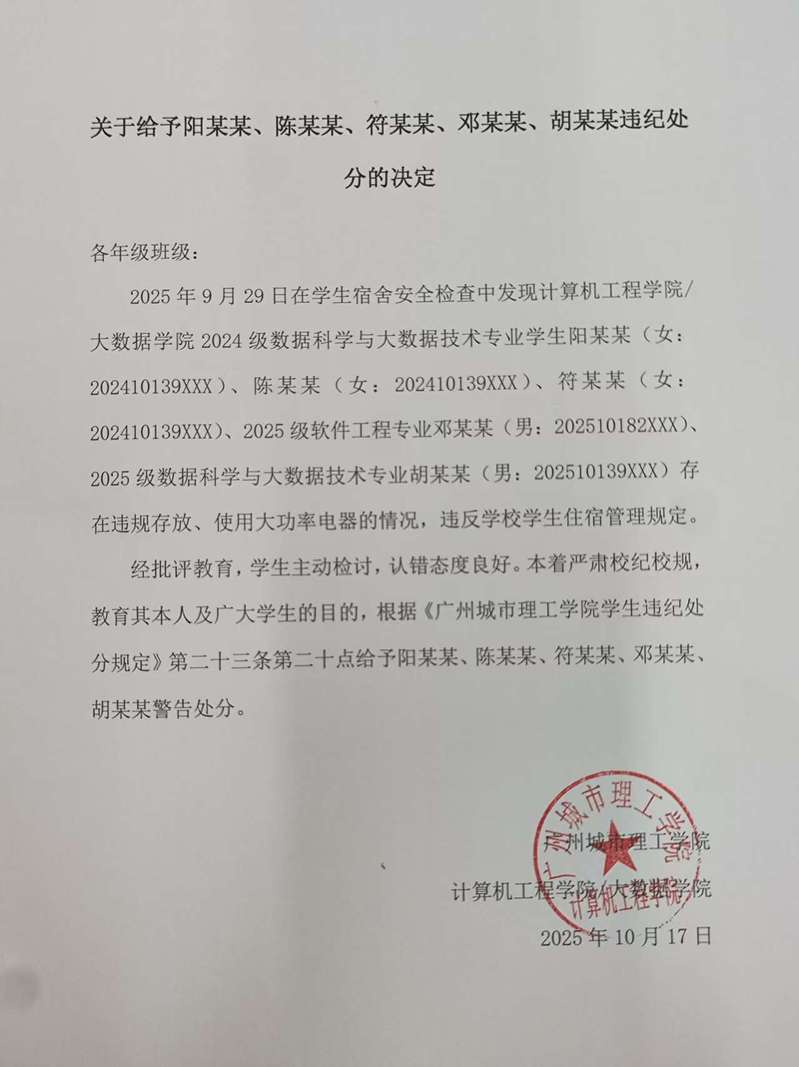 关于给予阳某某、陈某某、符某某、邓某某、胡某某违纪处分的决定